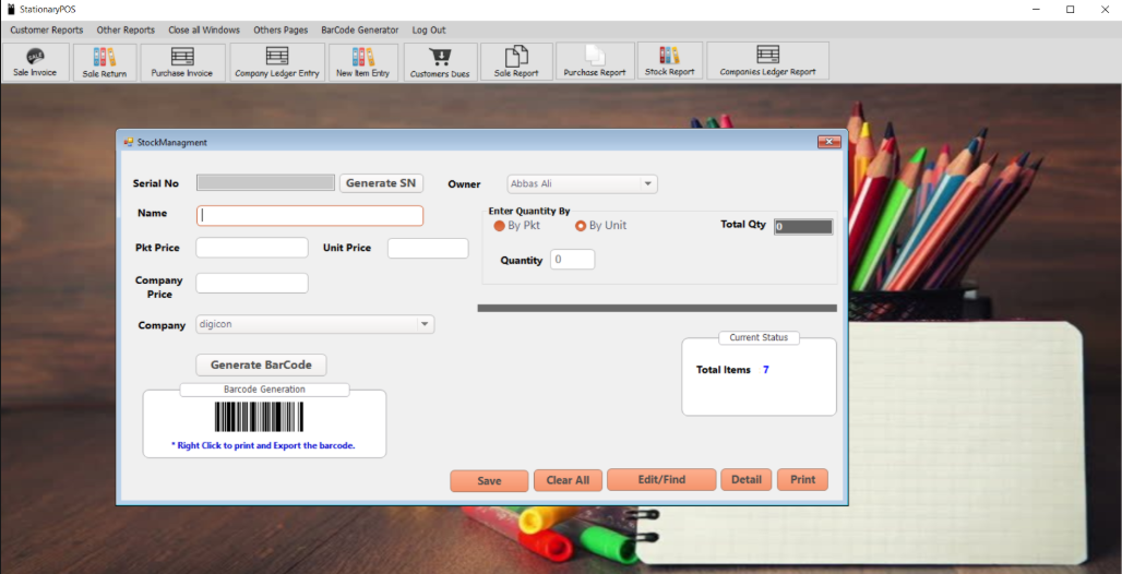 The Point of Sale System is a commercial-grade solution designed to streamline retail operations across sales, purchases, inventory, and financial tracking. Built for speed, accuracy, and scalability, it empowers businesses to manage transactions, customer dues, and reporting with real-time visibility, automation, and compliance. The system supports barcode generation, ledger management, and dynamic reporting to ensure smooth day-to-day operations and strategic decision-making.