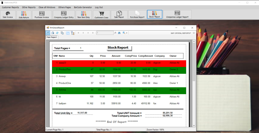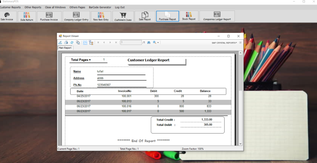 - Comprehensive Reports: Sales, purchases, stock movement, ledger summaries, and expense breakdowns