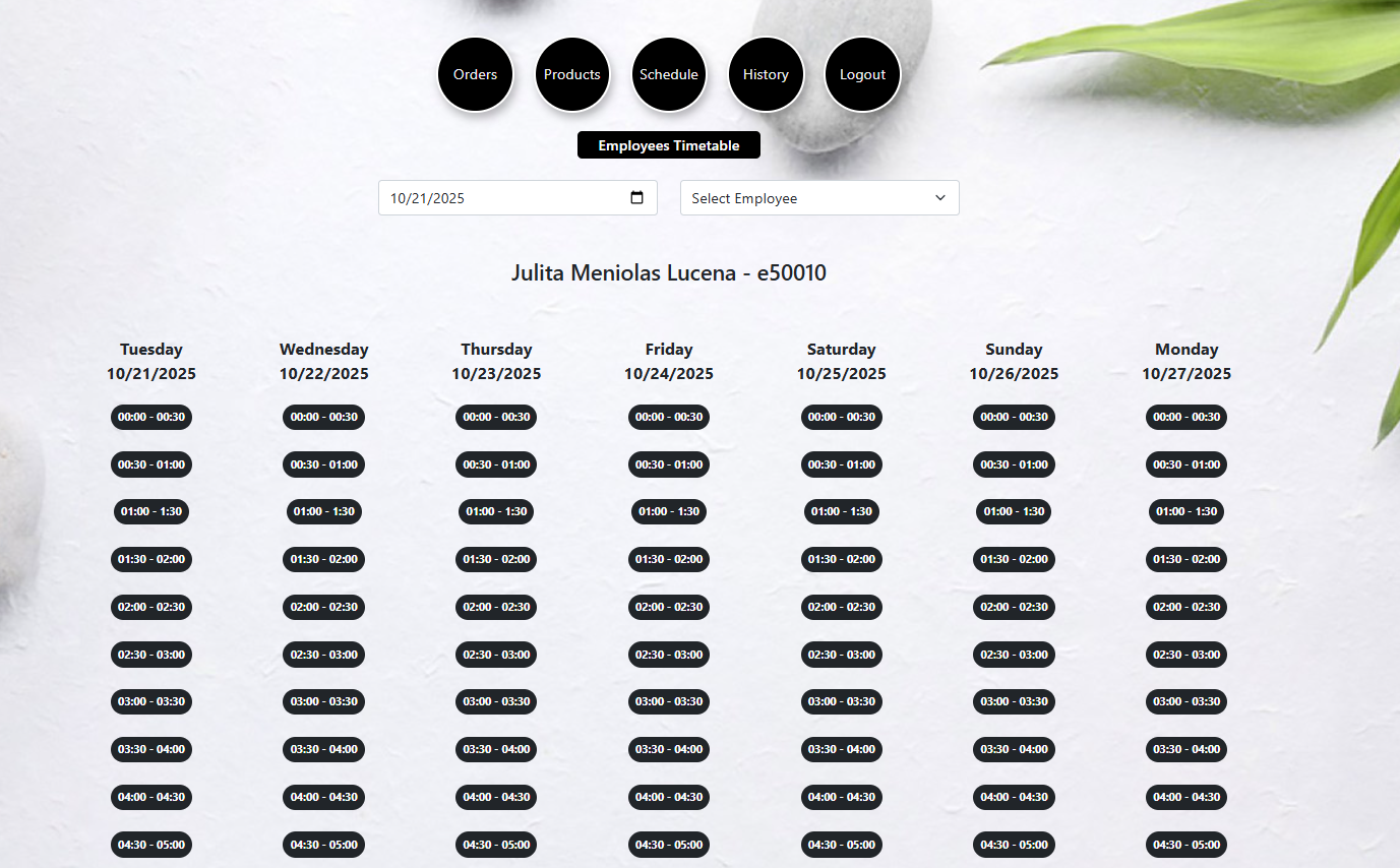 - Provides employer-side dashboards for staff schedules, service history, and slot utilization