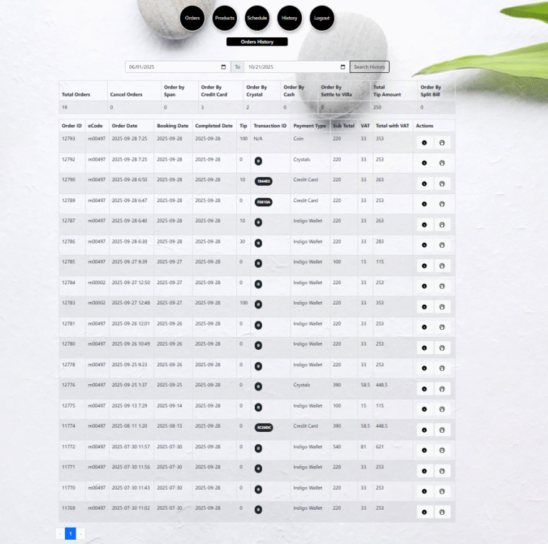- Delivers historical tracking for bookings, payments, and service feedback