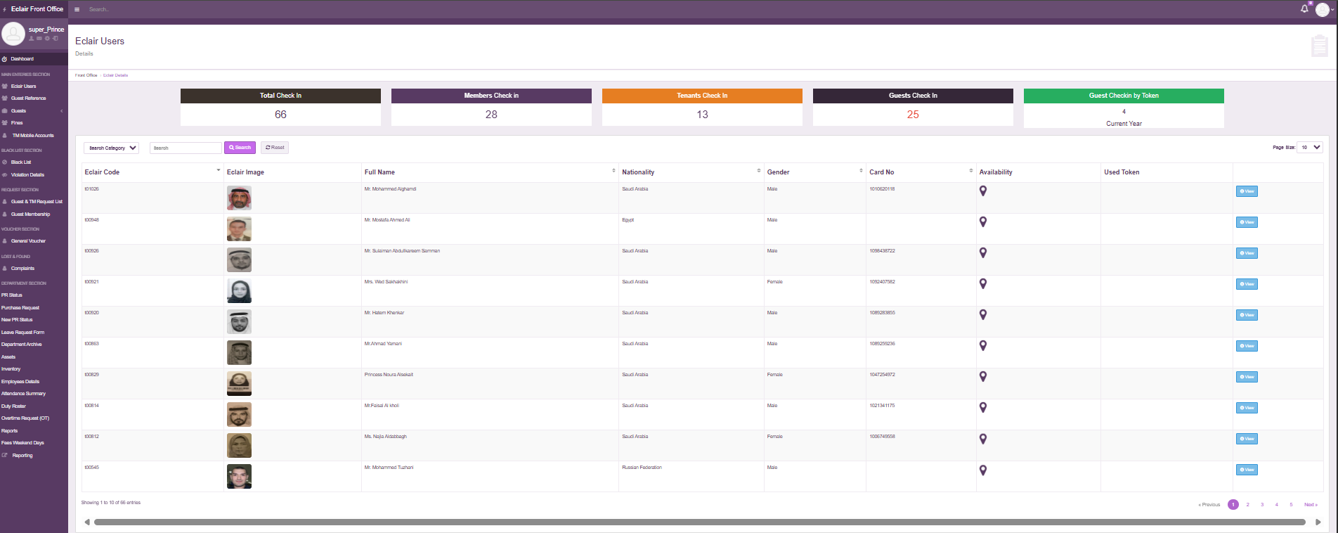 - Front Office Operations: Guest/Member/Tenants handling, appointment scheduling, Checkin, fees, visitor logs and other operations.
