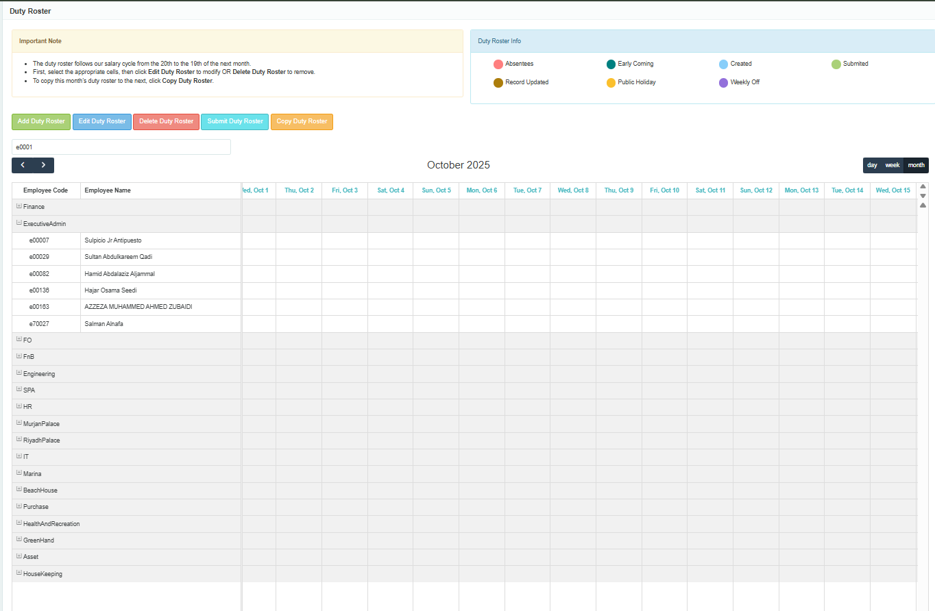 - Human Resources: Employee records, attendance, payroll, leave management, and performance tracking